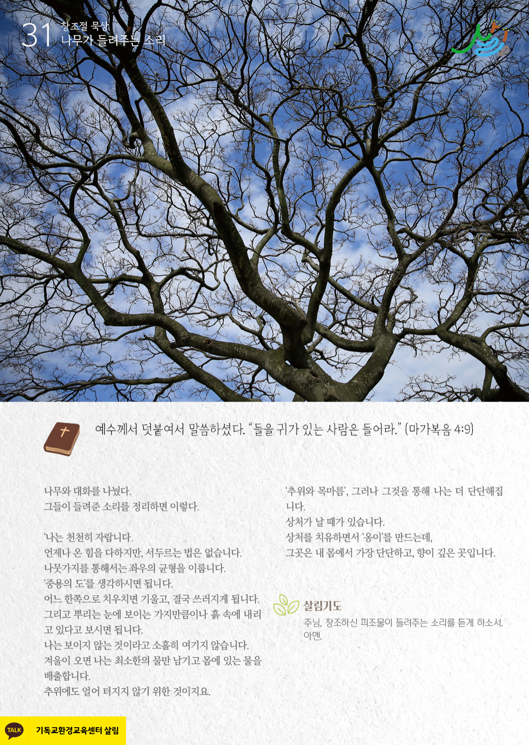 창조절 묵상 31일 / 나무가 들려주는 소리