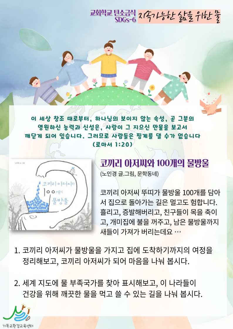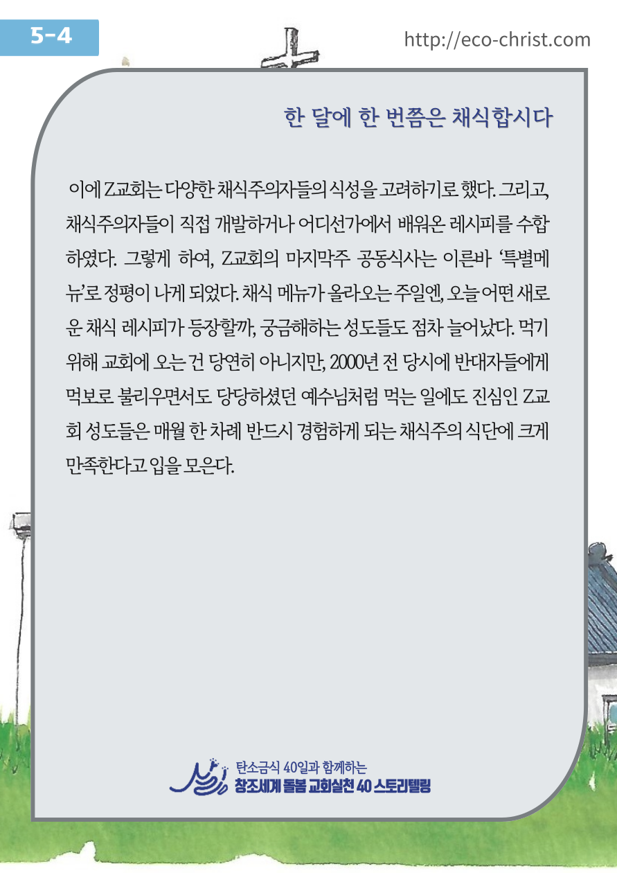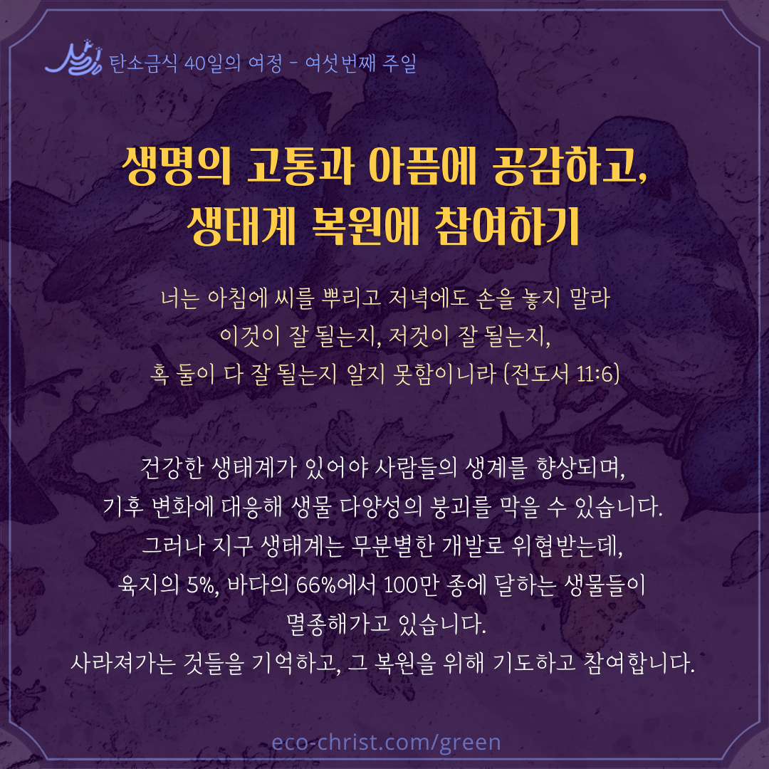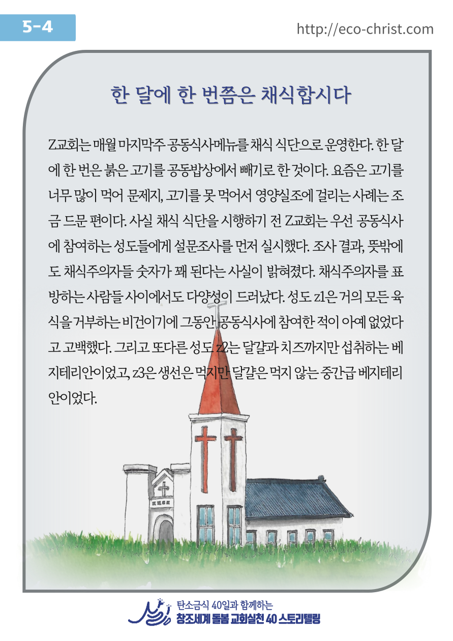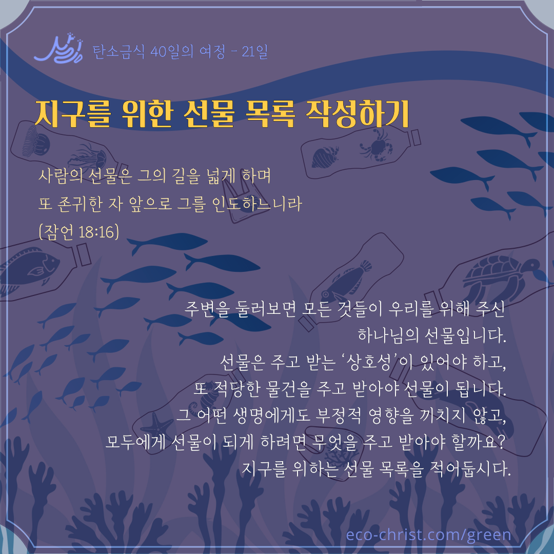 - 7주간 "교회학교 탄소금식" 주간별 카드 중 1주 카드 샘플 (클릭하시면 크게 볼 수 있습니다. 이밖의 2-7주의 교회학교 탄소금식 카드는 신청자들에게 온라인 카드 파일로 전송합니다)