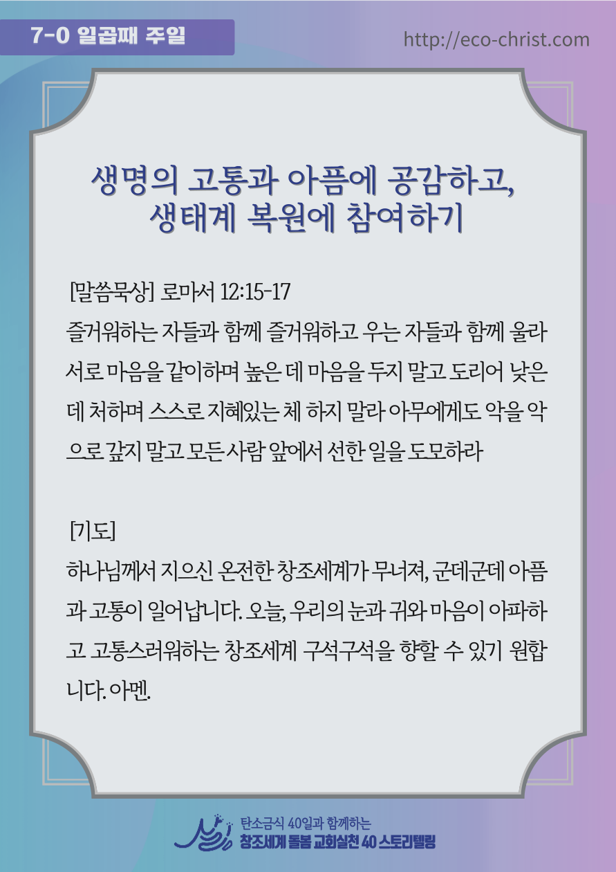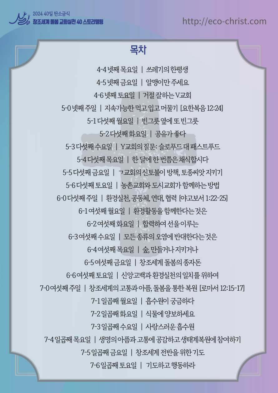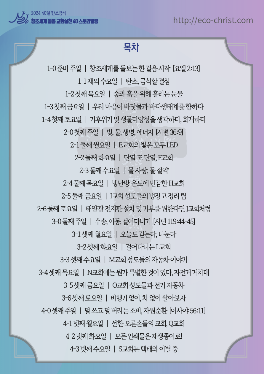 - "교회학교 탄소금식" 7주간 달력 & 기도문(클릭하시면 크게 볼 수 있습니다)